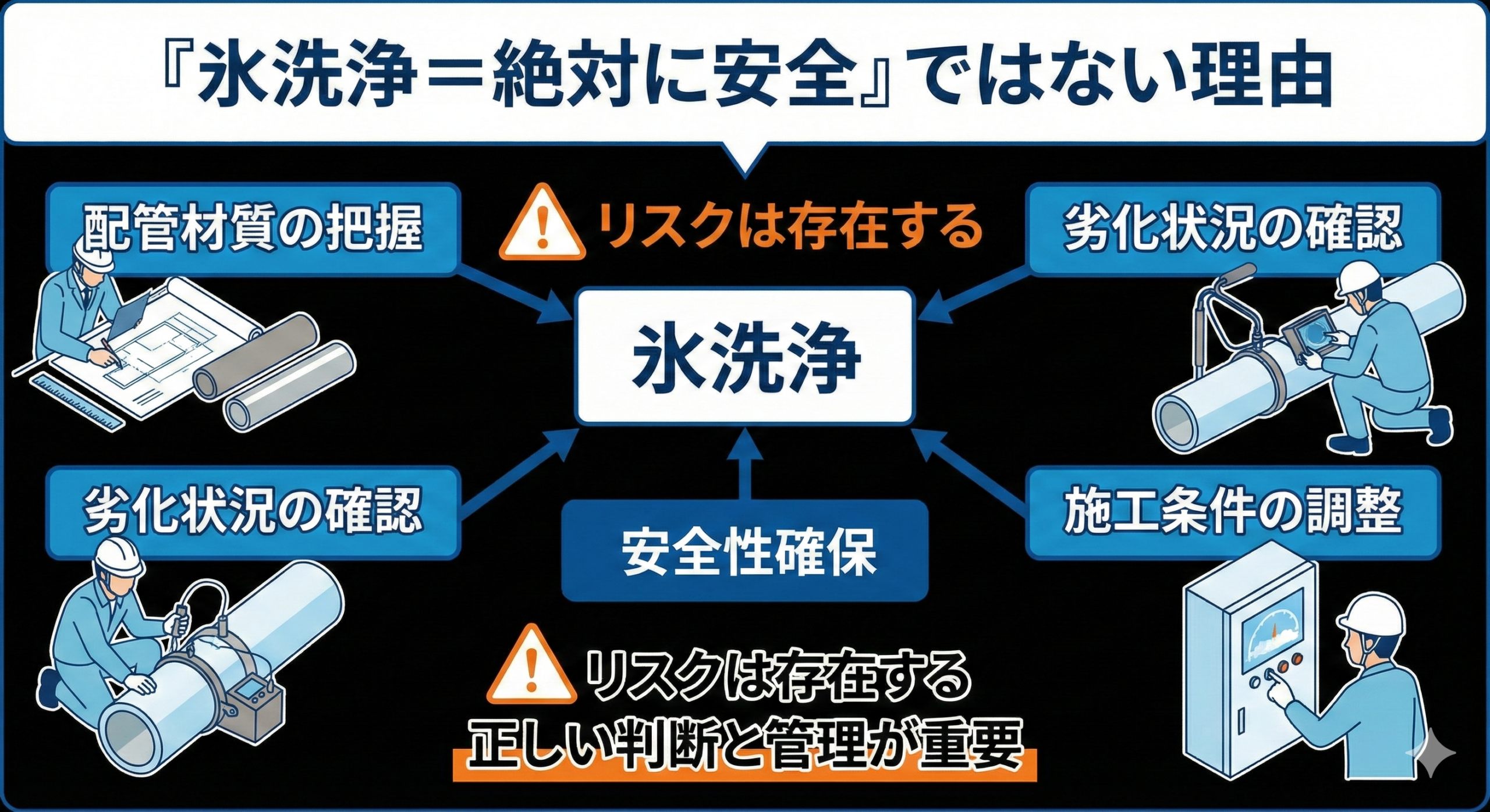 氷洗浄はなぜ配管を傷めにくい?材質別に見る洗浄方法の考え方_考え方