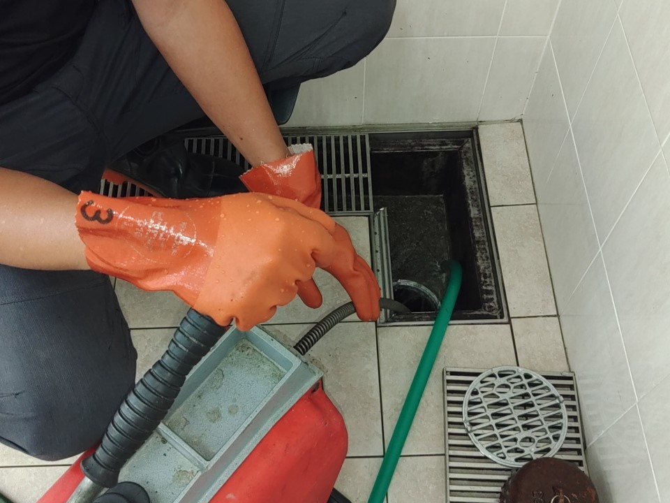 1年に1度浴室の配管清掃をお願いされている某施設に行ってきました。実は排水口から奥につながる「配管」には、髪の毛や石けんカス、皮脂汚れが少しずつ溜まっています。これを放置すると、水の流れが悪くなったり、嫌な臭いが上がってきたりする原因になります。